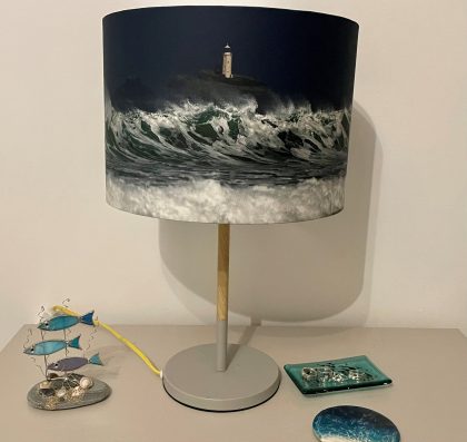 The Godrevy Lighthouse Homewares Collection is a range of luxury Cornish wall art and home furnishing: with its dramatic shades of dark blues and teals combined with white tipped waves; this amazing image is an interior designer’s dream!!