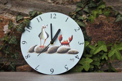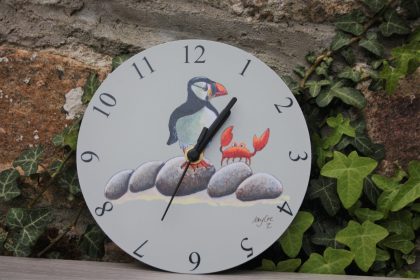 Our designer wall clocks add a stylish touch to your home interior, and make a great functional addition to any room. 3 designs to choose from Puffin, Ice Cream Thief Gull and Pasty Thief Gull.
