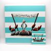 Our extra large square place mats featuring our Cornish Pasty Thief Gull and his crabby friends on a turquoise and white striped background would make a wonderful gift for any lovers of Cornwall and for many an amusing reminder of what happened to their Pasty!!!